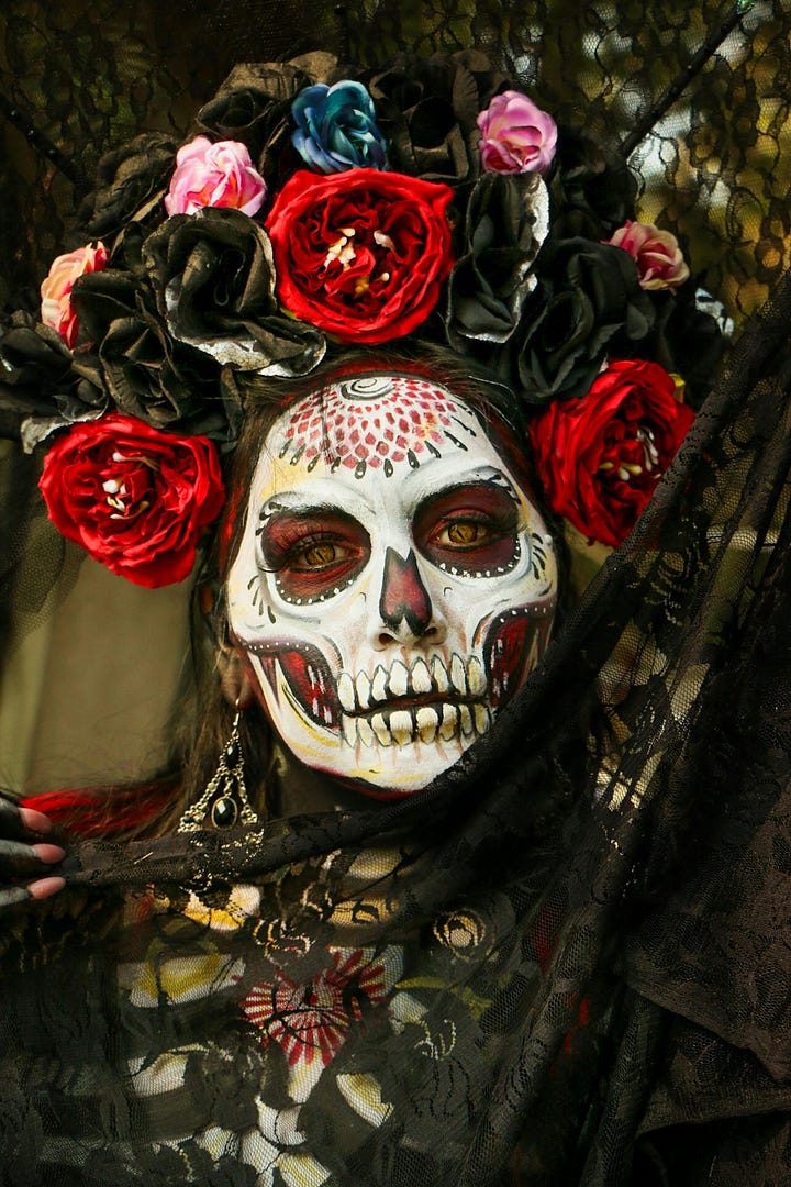 The altars feature photographs, the deceased’s favorite foods and drinks, and calaveras (sugar skulls) that mock death. Unlike many Western observances of death, Día de los Muertos is marked by joyous celebration, music, and laughter, emphasizing that memory keeps the dead alive. We can all learn from this. If you’ve never been to a Día de los Muertos celebration, find one in your area. They are amazing and beautiful to witness!