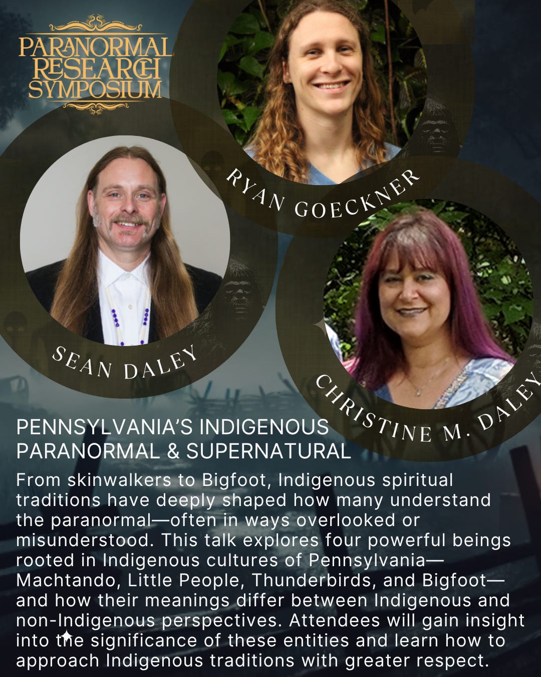 What we will be presenting: Indigenous Paranormal and Supernatural Phenomena in Pennsylvania - Sean M. Daley, Ryan T. Goeckner, Christine M. Daley